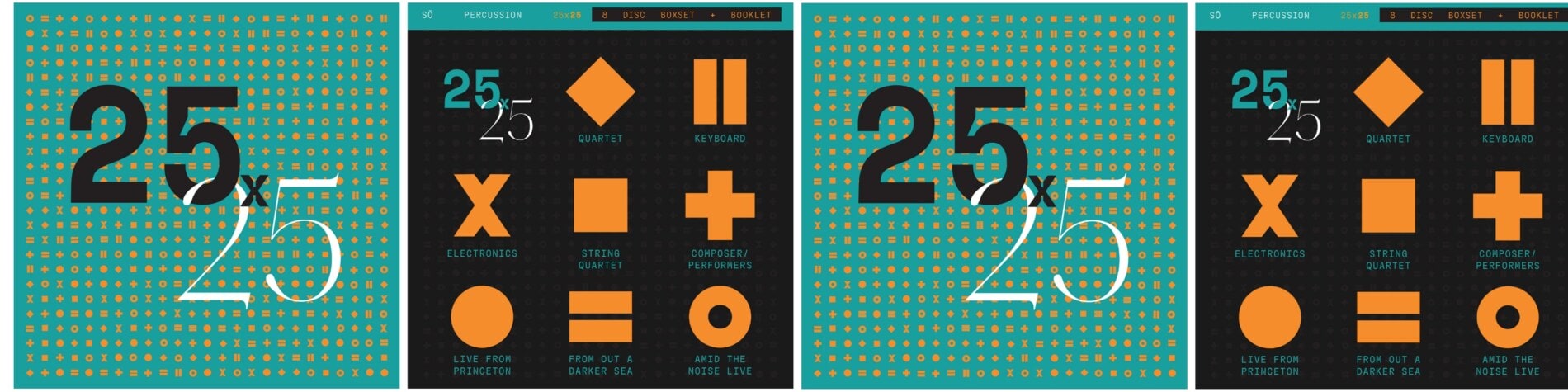 In celebration of our 25th year together pushing the limits of contemporary music, Sō Percussion announces the release of 25×25, to hit all streaming networks on September 26, 2025. In keeping with the group’s forward-looking mission, this 8-disc box set is not a retrospective; more characteristically, it’s a stand-alone listening experience, featuring more than 8 hours of entirely new and previously unreleased recordings, with each piece written for, in collaboration with, and premiered by Sō Percussion.