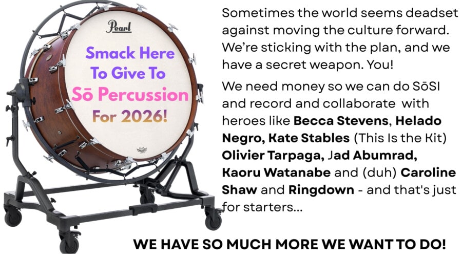 But y’all let’s be real for one second. This all costs money. From the commissions, to the rehearsals, the schlepping of gear, the engineers and producers, the video artists, the amazing folks who perform alongside us and did we mention overhead and payroll taxes? We have productions staff, an incredibly utilitarian home loft studio in Brooklyn that we share for free with many and at super low rates with others. We run a Summer Festival (SōSI) where so many of our new heroes once attended. In a word, we stay busy.