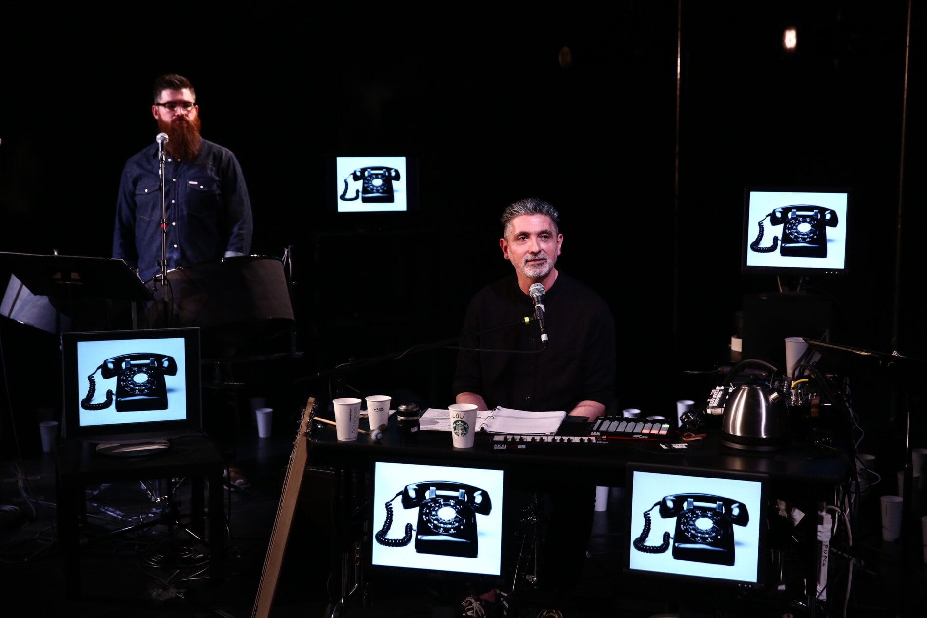 Three “relics” undergird this work. First, in 2019, Gordon & Quillen visited Quillen’s mom, Sue, recording an interview from her perspective as caretaker during Jerry’s illness. That transcript serves as foundational text with Ain voicing Sue and Josh voicing himself. Second, Sue offered up Jerry’s journal chronicling the arc of his disease in headlines: “feel better” only to reverse the next day with “limp, tired.” Third, Jerry made a 17-track playlist (sorry but you must see the work to learn why). The playlist is reimagined by Quillen and Gordon from song elements (a 3-note key progression or a foot stomped rhythm) – overlayed by text – or morphing into newly composed songs utilizing phrases from Jerry’s journal (“I’ve a little drag in my foot”). These elements are framed by Gordon’s recall of his first visit with Sue over dinner in Quillen’s childhood home – and the surprising extra person seated at that dining room table.